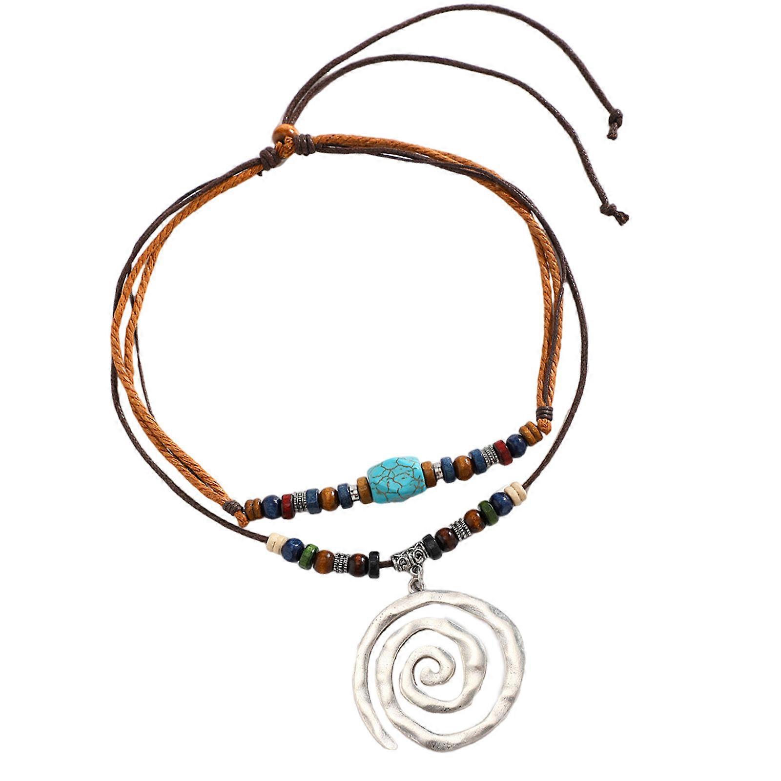 Turquoise Beaded Rope Choker Large Silver Spirals Pendant Necklace Adjustable Length Clavicle Chain Party Jewelry ancient silver