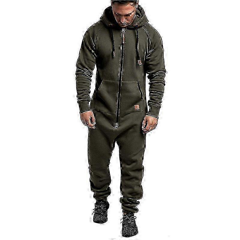2025 Men's Hooded Jumpsuit Zip Up One Piece Pajamas Playsuit