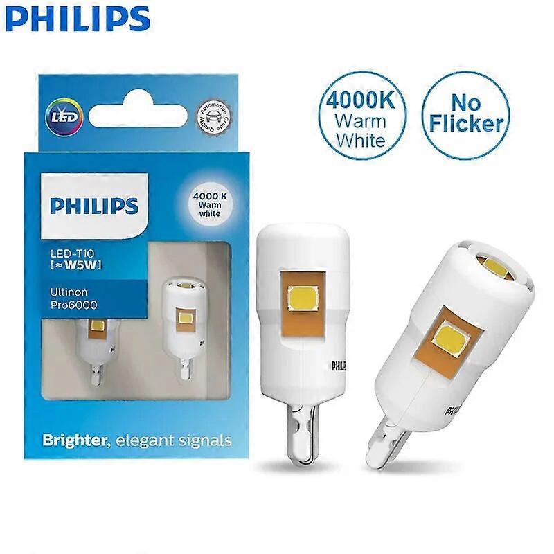 Ultinon Pro6000 LED T10 W5W 4000K Warm White Bright Car Interior Light Turn Signals No Flash No Error 11961WU60X2, Pair