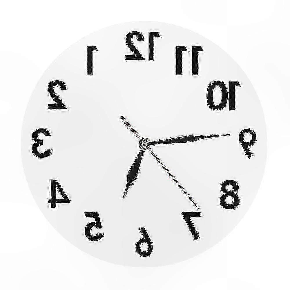 Reverse Anti Wall Clock Backwards Time Run Counter Clockwise Wall Watch Features: Lightweight, which is one-tenth of the weight of a normal mirror. Easy to install. It can be easily fixed with double-sided tape. Non-toxic, non-polluting, waterproof, and corrosion resistant. As clear as mirrors. The proximity is exactly the same as the mirror, and objects in the distance (2 meters away) will be slightly blurred. Can achieve the perfect decorative effect. DIY item. It needs to be assembled by yourself. Specifications: Material: Acrylic Color: White, Black Power Supply: Battery (not included) Clock Diameter: 30 cm Package Included: 1 x Wall Clock