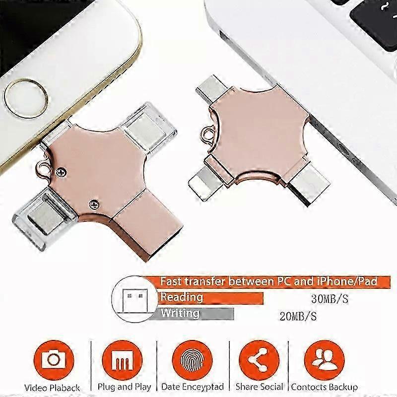 1TB Cross-Shaped USB Flash Drive 4 in 1 for Iphone/Android/Type-C Metal OTG Pendrive