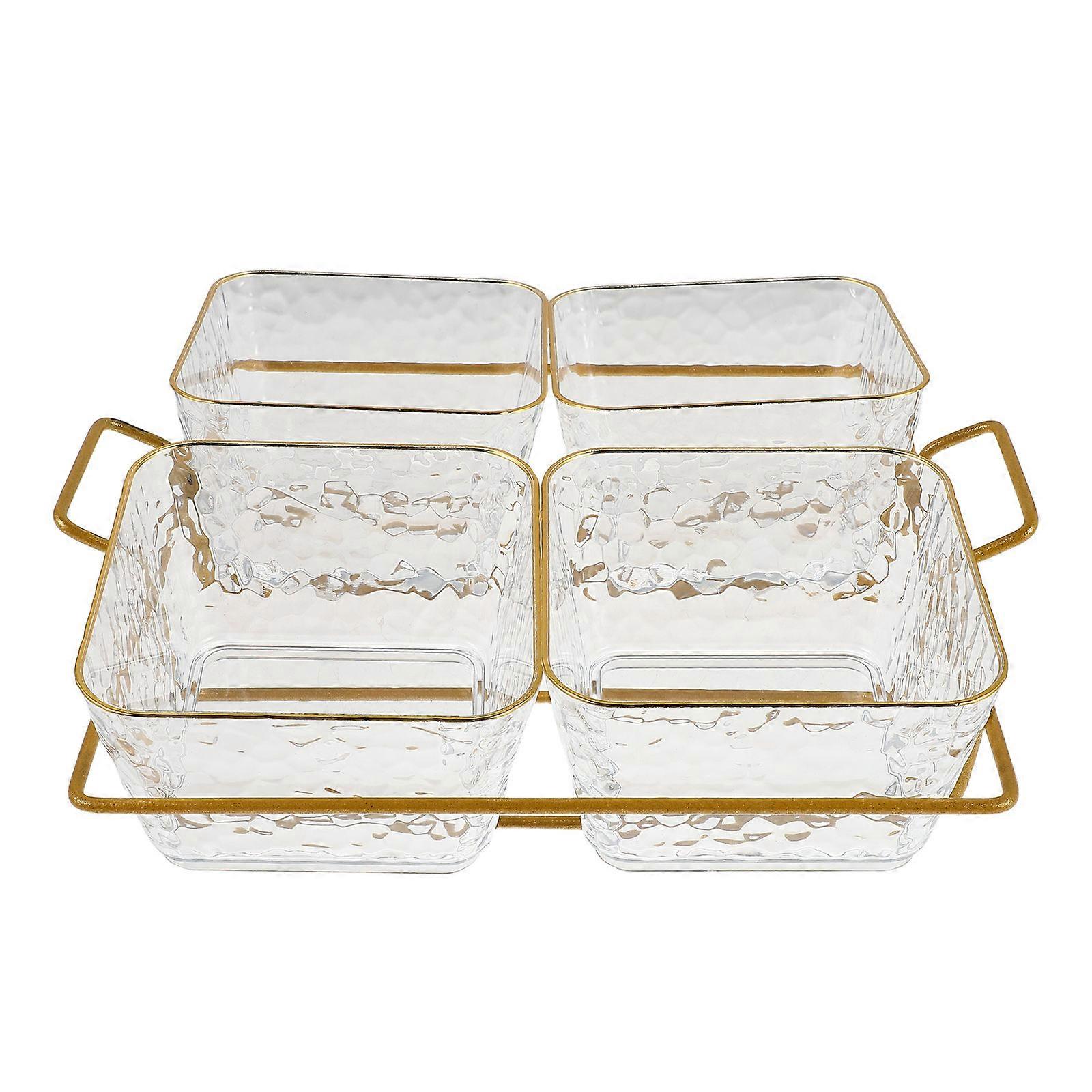 Acrylic Divided Serving Tray for Kitchen with Clear Glass Bowls Set