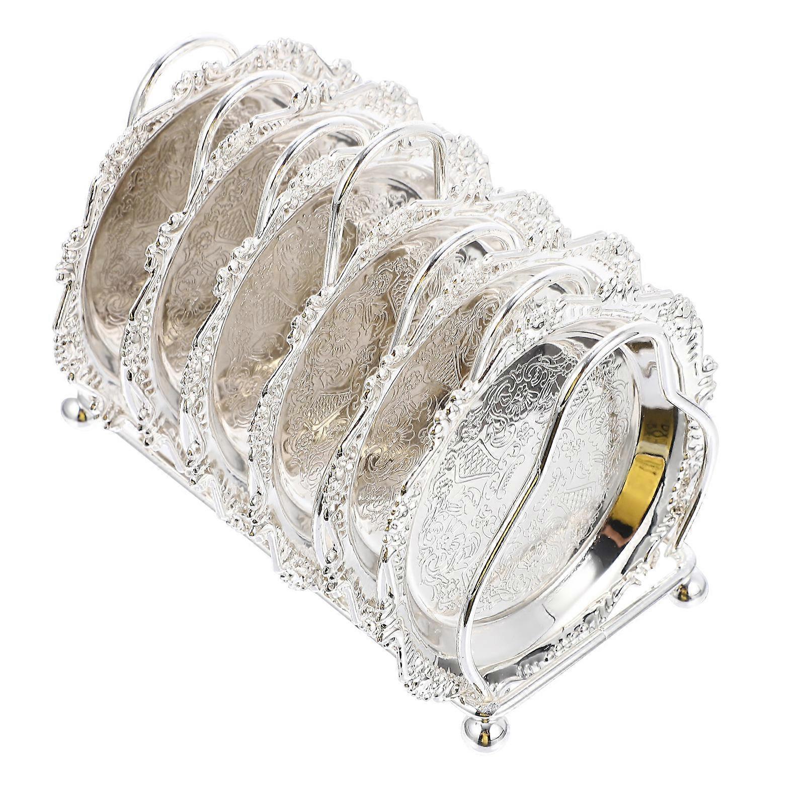 Vintage Silver Tray Silver Platter with Rack Food Serving Snack Storage Home Decoration 14.5x10cm 1 Set