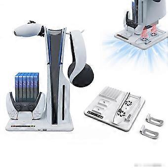 Vertical Cooling Stand for PS5 Slim Console, Multi Organiser with Dual Controller Charging Station&2 Hooks for PS5 Controller & Headset 2025