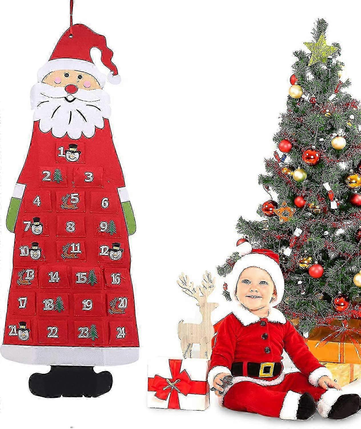 Wall Hanging Santa Claus Advent Calendar, Felt Countdown Calendar 24 Day Pockets Calendar Fill For Decorations Rooms, Tree, Door, Christmas