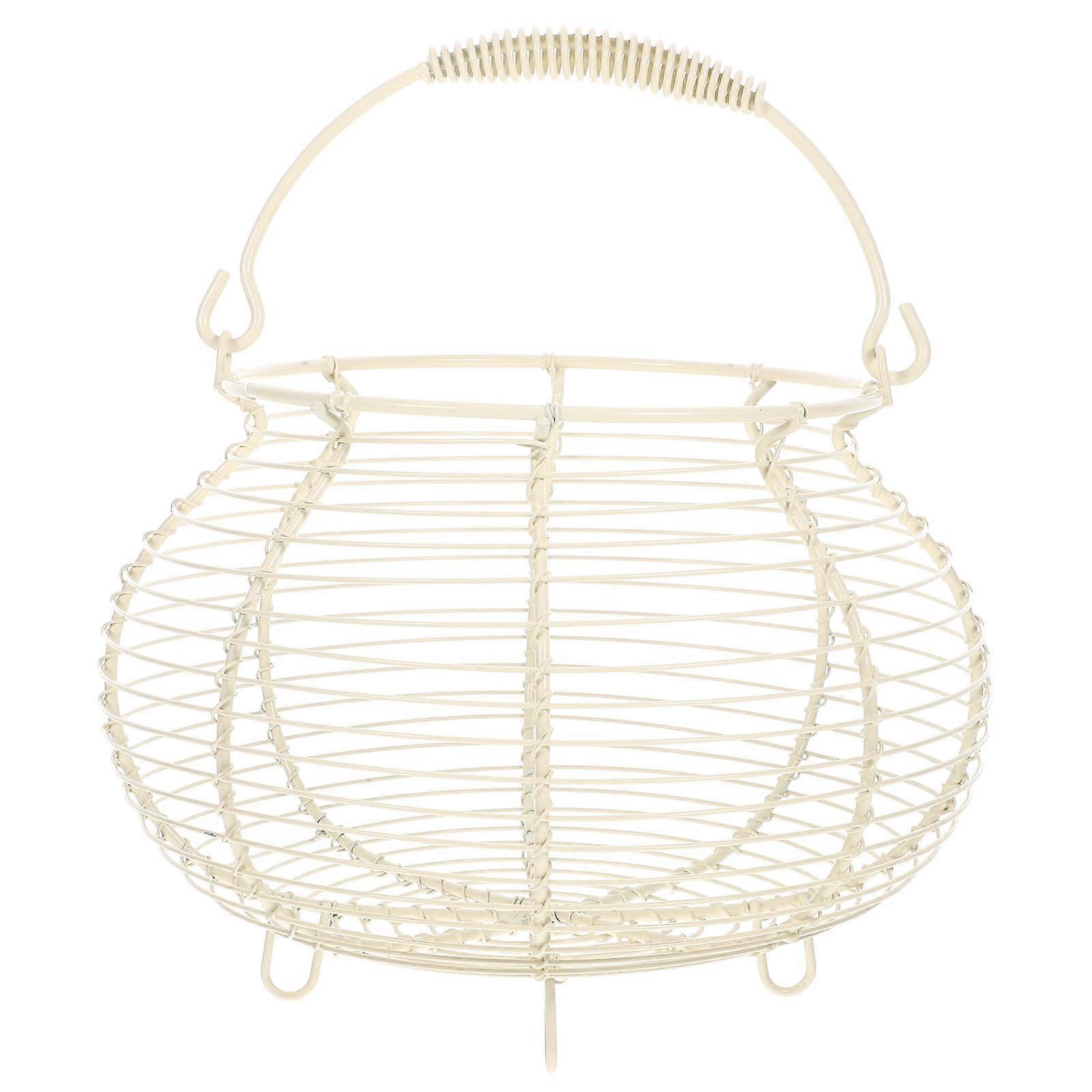 Wire Basket with Ergonomic Handle, Transparent Design for Easy Viewing, Multi Purpose Storage for Kitchen, Fruits, Vegetables, Eggs, Crafts, White