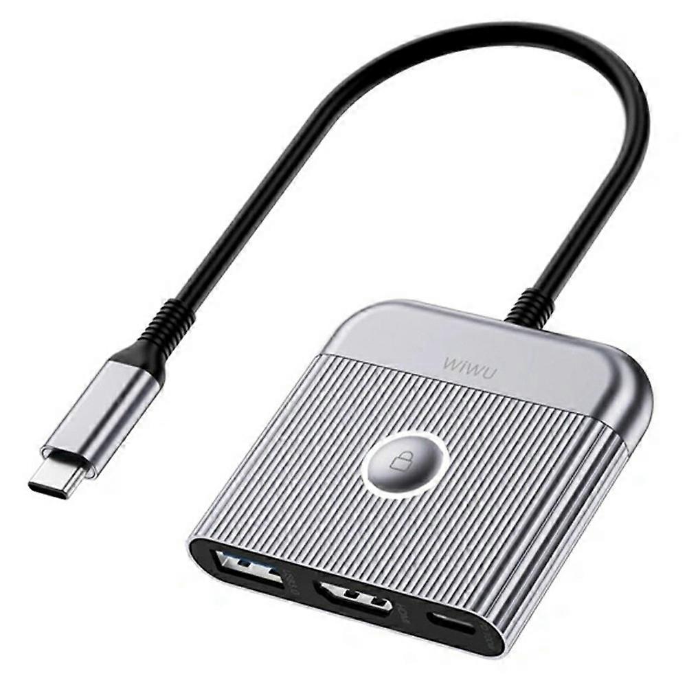 WIWU HB002 For Laptop 3 in 1 Type C Hub with USB C / 4K 60Hz HD / USB 3.0 and Screen Lock Button